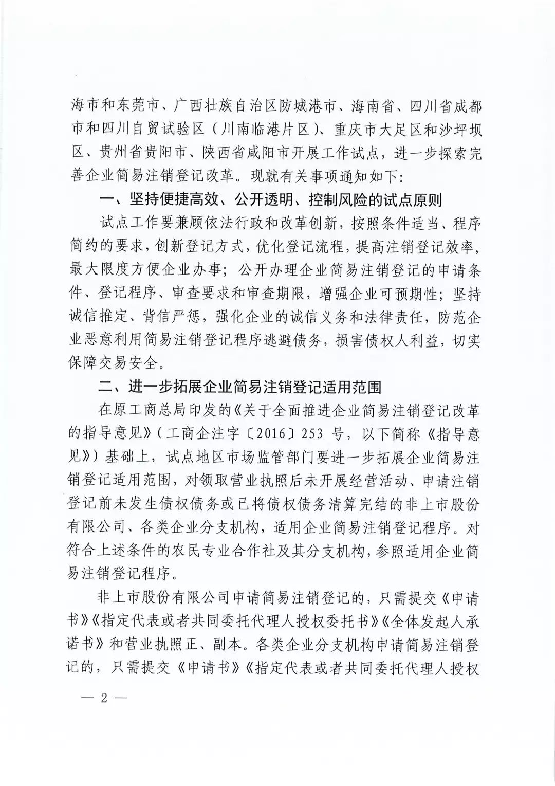 新政!開展進一步完善企業(yè)簡易注銷登記改革試點工作的通知